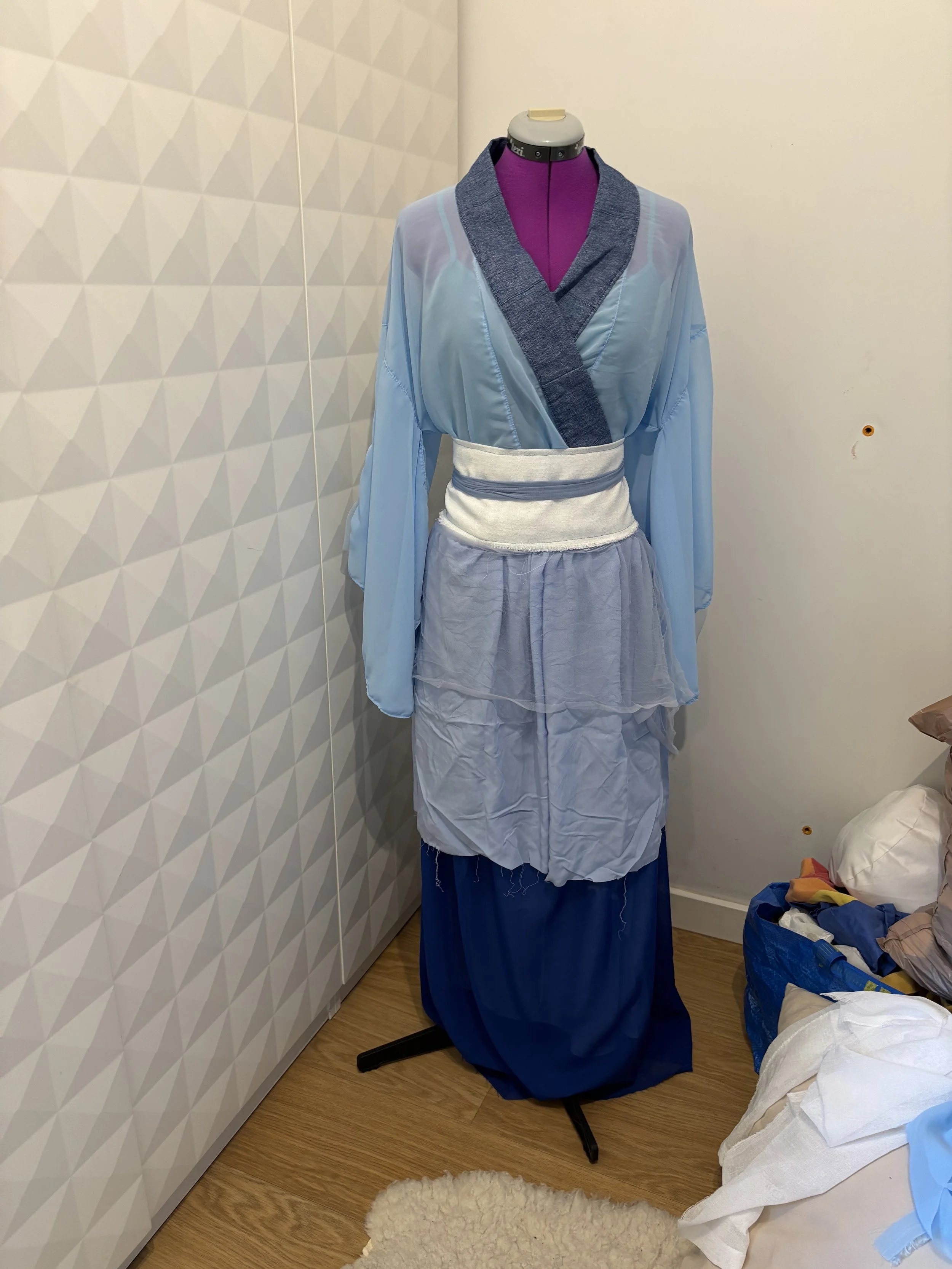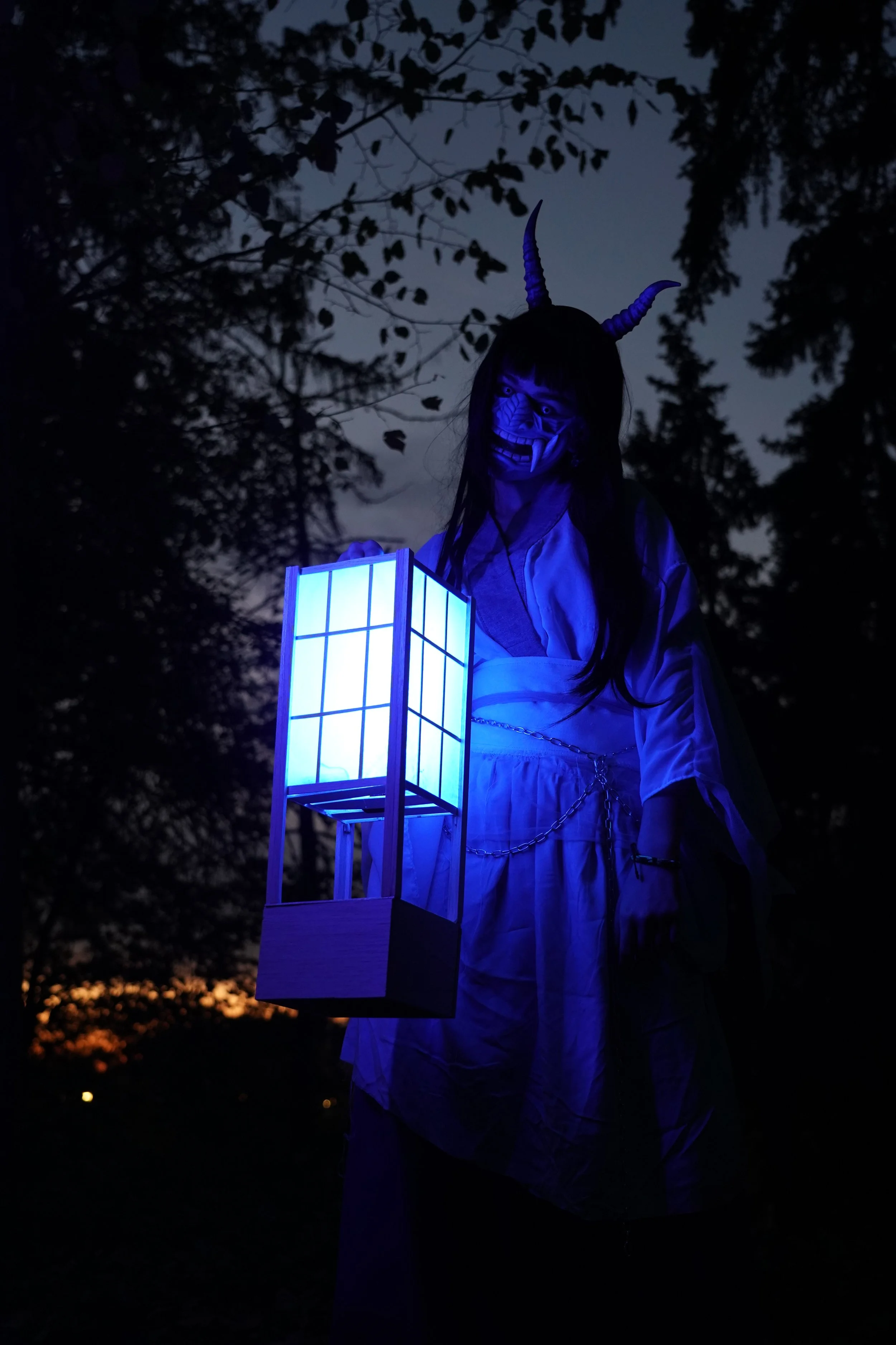 I designed the look to be historically accurate but with modern elements. Then I made a prototype of the andon and started translating my Japanese haori pattern. It took me way longer than I expected to figure it out but at the end I succeeded. I sewed and painted the rest of the pieces to finish the look.